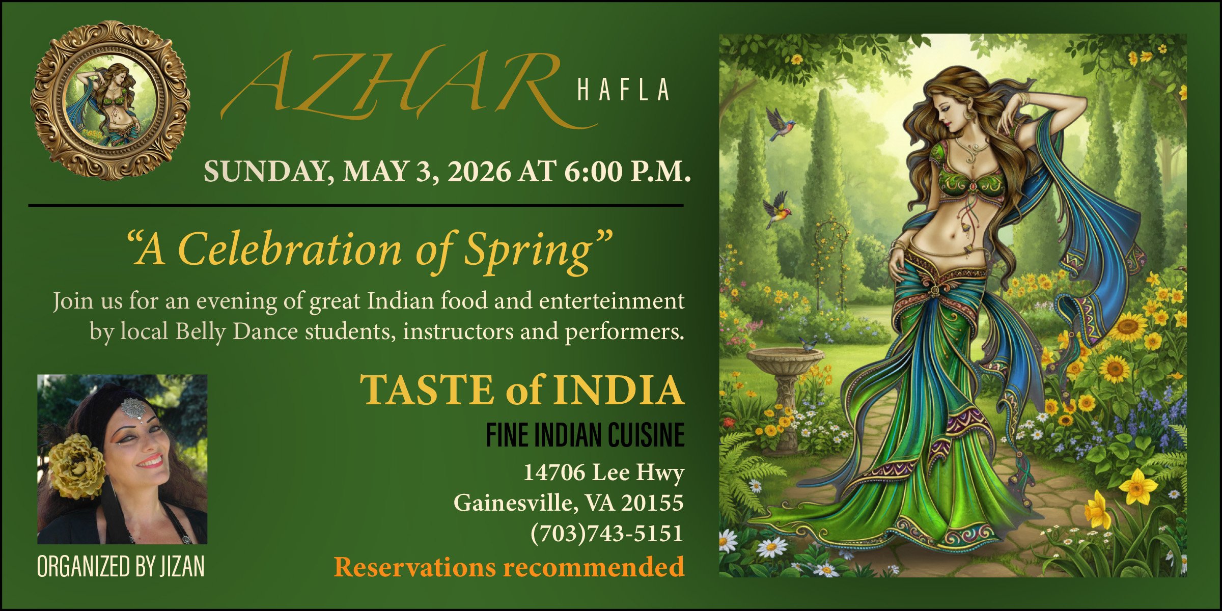 Thank you so much for supporting AZHAR Hafla. There is no cover charge for this fun and family-oriented event.